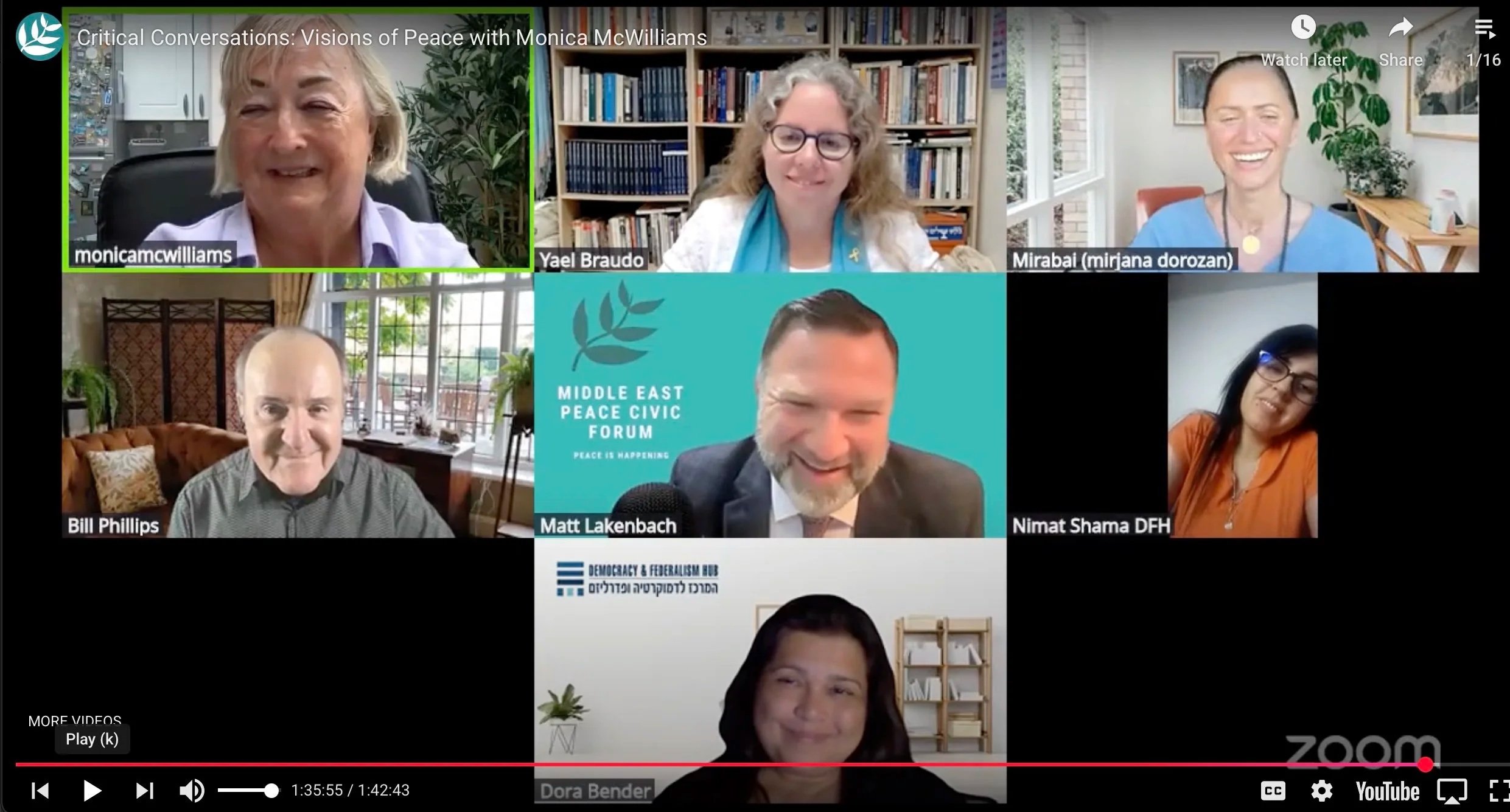 We recently welcomed Monica McWilliams, an architect of the historic Northern Ireland peace, in conversation with Israeli and Palestinian women and MEPCF facilitators.